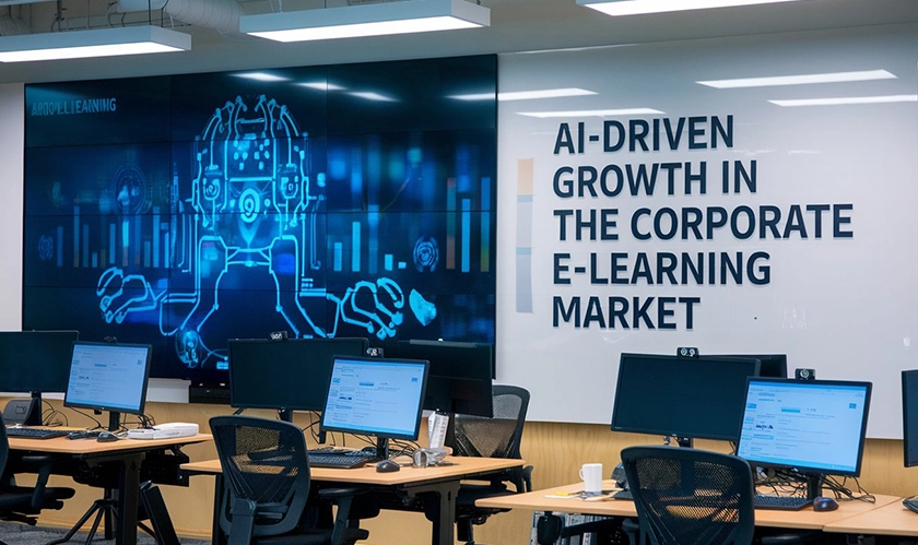 Corporate e-learning is changing with the help of personalized, cloud-based solutions, micro-learning and adaptive training to facilitate efficient skill development, driving market growth.