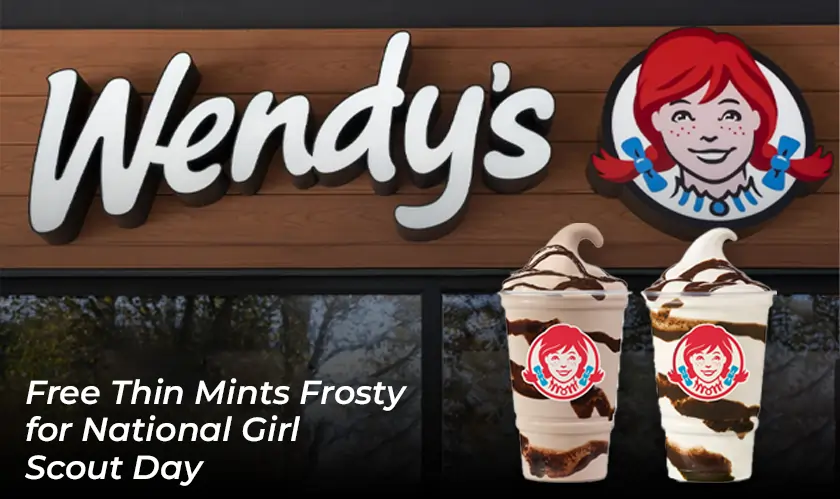 As a National Girl Scout Day celebration Wendy’s provides customers with one small Thin Mints Frosty at no cost. Food and beverage lovers can take advantage of this minty treat promotion throughout the day since Wendy's provides it from morning to evening.